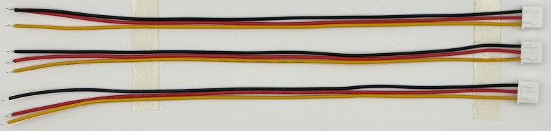 黒: GND (ピン1), 赤: 5V (ピン2), 黄: 12V (ピン3)