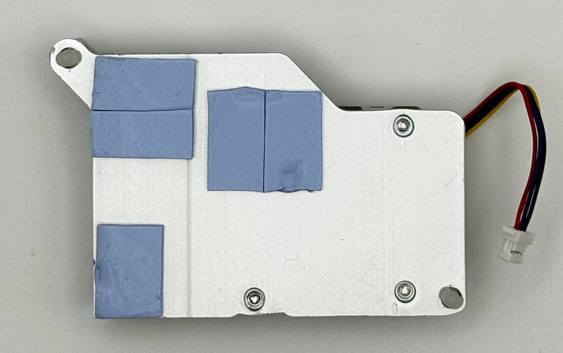 アクティブクーラーの裏面に貼られている大きめな正方形の放熱シートを半分に切る 2 シート分