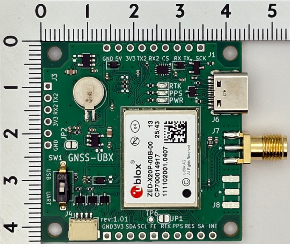 GNSS-UBX-X20P: ZED-X20P 搭載基板